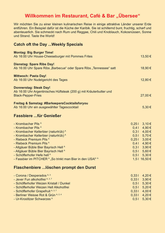 Unsere Speisekarte im ÜBERSEE